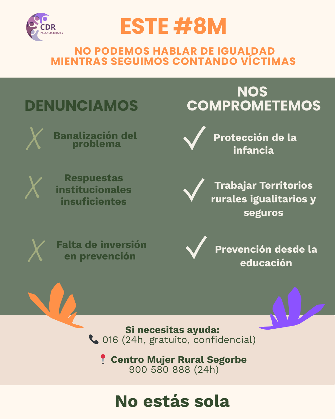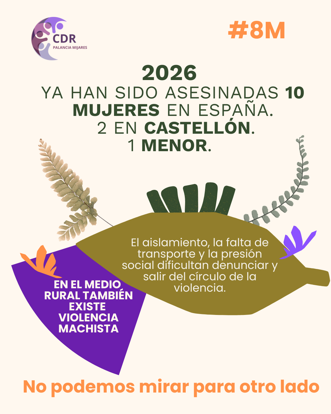 Como señala Mariola Valls Blanco, coordinadora de Igualdad del CDR Palancia Mijares y activista del Colectivo Feminista del Alto Palancia: “Este 8M no puede ser solo una conmemoración. Comenzamos 2026 con más asesinatos que el año pasado en el mismo periodo y con nuestra provincia concentrando una parte desproporcionada de la violencia letal. En el medio rural las mujeres encuentran más obstáculos para denunciar y acceder a recursos. Necesitamos políticas valientes, estables y comprometidas con la igualdad real.”