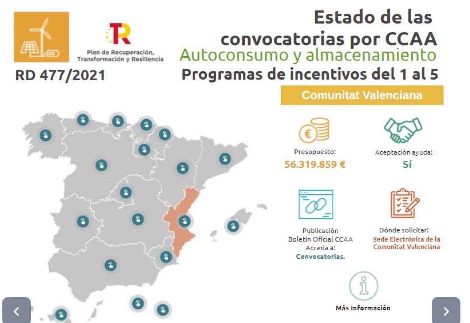 Ayudas e incentivos para la ejecución de programas ligados al autoconsumo y al almacenamiento con fuentes de energía renovable. Estas ayudas las pueden solicitar las administraciones públicas, comunidades de propietarios, el tercer sector, personas jurídicas y personas físicas, entre otros.