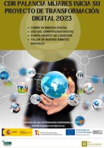 El CDR Palancia Mijares, se embarca en el Programa de Modernización y Transformación Digital promovido por COCEDER y vinculado al Plan de Recuperación, Transformación y Resiliencia de la Secretaría de Estado de Derechos Sociales del Ministerio de Derechos Sociales y Agenda2030 y financiado por la Unión Europea con fondos NextGenerationEU. Este programa tiene la finalidad de luchar por cerrar la brecha digital en las comarcas del Alto Mijares y Alto Palancia.