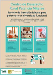 El Centro de Desarrollo Rural Palancia Mijares cuenta con el Servicio de Orientación Profesional y Acompañamiento en el Empleo para personas con diversidad funcional. Con este servicio se busca mejorar la calidad de vida y fomentar el acceso al empleo en personas con discapacidad intelectual, ayudando en la información relativa a la empleabilidad e inserción laboral y realizando un trabajo en red con las distintas entidades públicas y con empresas privadas.