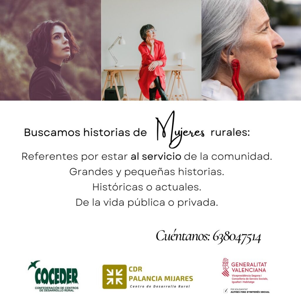 La primera acción con la que arrancamos el proyecto es una Investigación cualitativa (método biográfico) para la recuperación de la memoria colectiva femenina a partir de las historias de vida de mujeres locales que hayan contribuido al desarrollo rural. El objetivo es la elaboración de un Cuaderno de Historias de Vida de mujeres que han contribuido al desarrollo rural local a través de sus testimonios, de sus familiares o de la memoria colectiva.