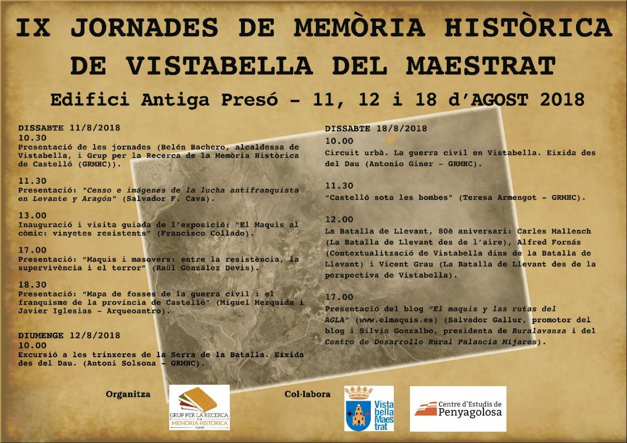 Las jornadas se celebran durante los días 11, 12 y 18 de agosto y están organizadas por el Grup per la Recerca de la Memoria Histórica de Castellón en colaboración con el ayuntamiento de Vistabella.